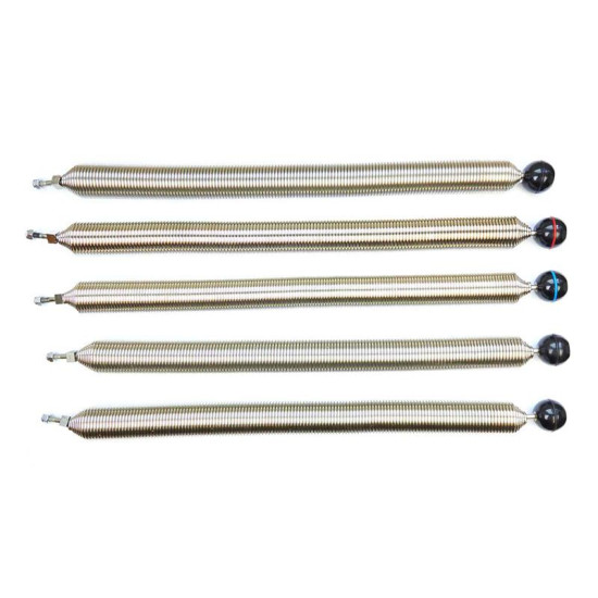 | Lichte arm veer | 2.2 - 3.2 lbs (1.0 - 1.5 kg) | 19 inch (48.3cm) | 1.1 inch (2,8 cm) | Geel | ||